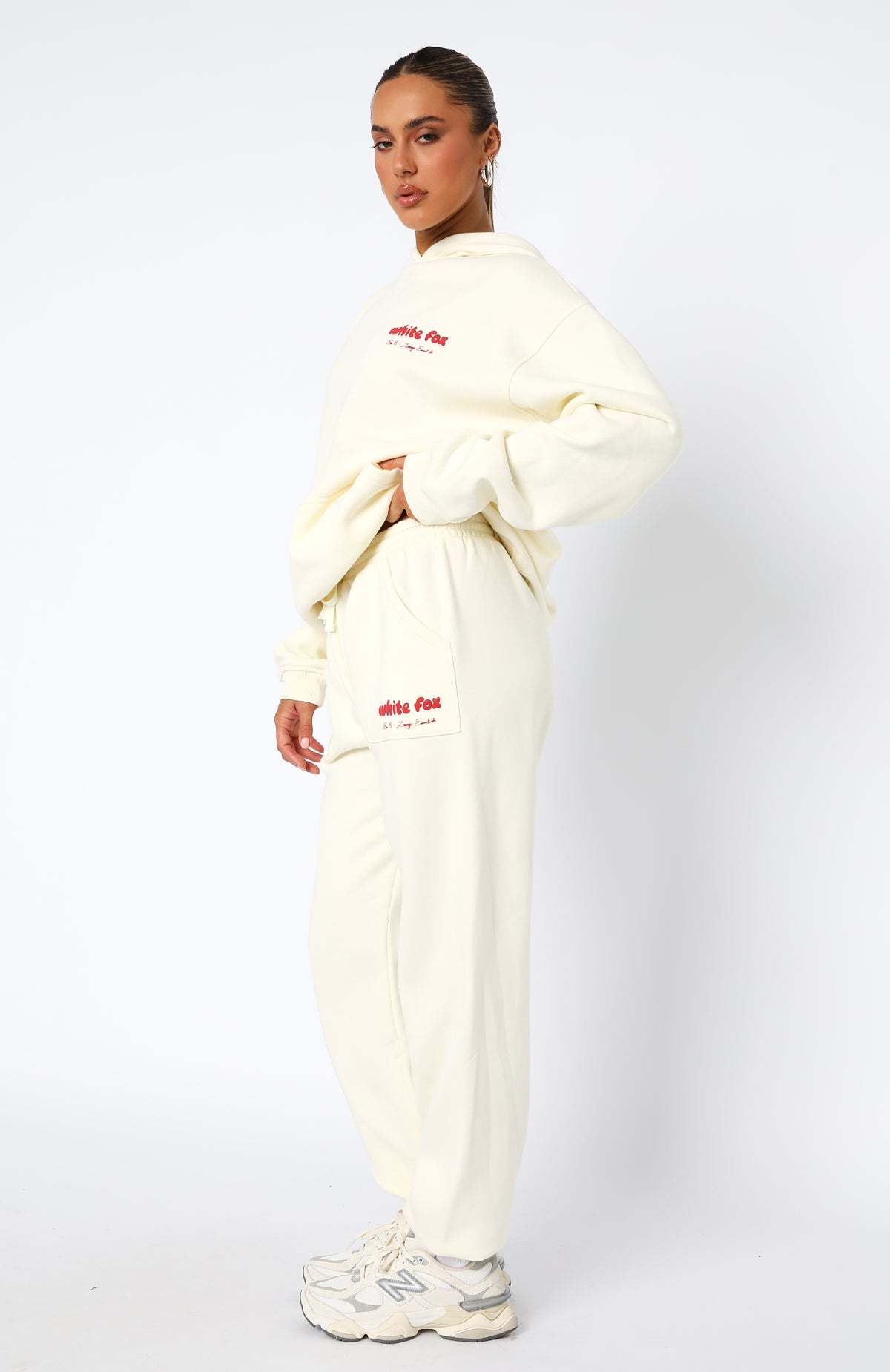 You'll want to be adding the Era 8 Sweatpants in Cherry Cream to your cart! Featuring a high elasticated drawstring waistband, elasticated ankles, side pockets, soft fleece fabric for extra comfort and puff print logo on side of leg. You can complete the tracksuit with the Era 8 Singlet, Era 8 Oversized Tee or the Era 8 Oversized Hoodie for a look we love!
