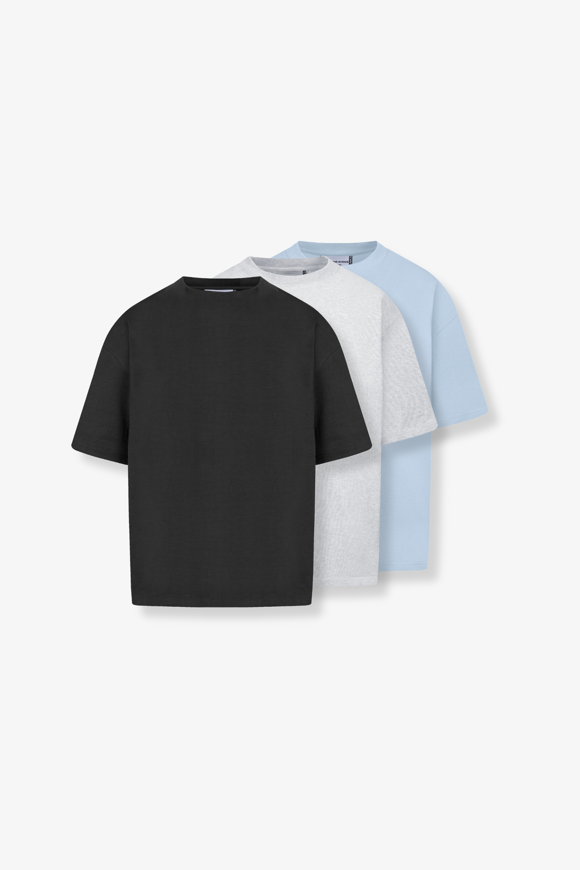 - 3er Set Heavy Blank T-Shirt in Black, Heather Grey & Baby Blue