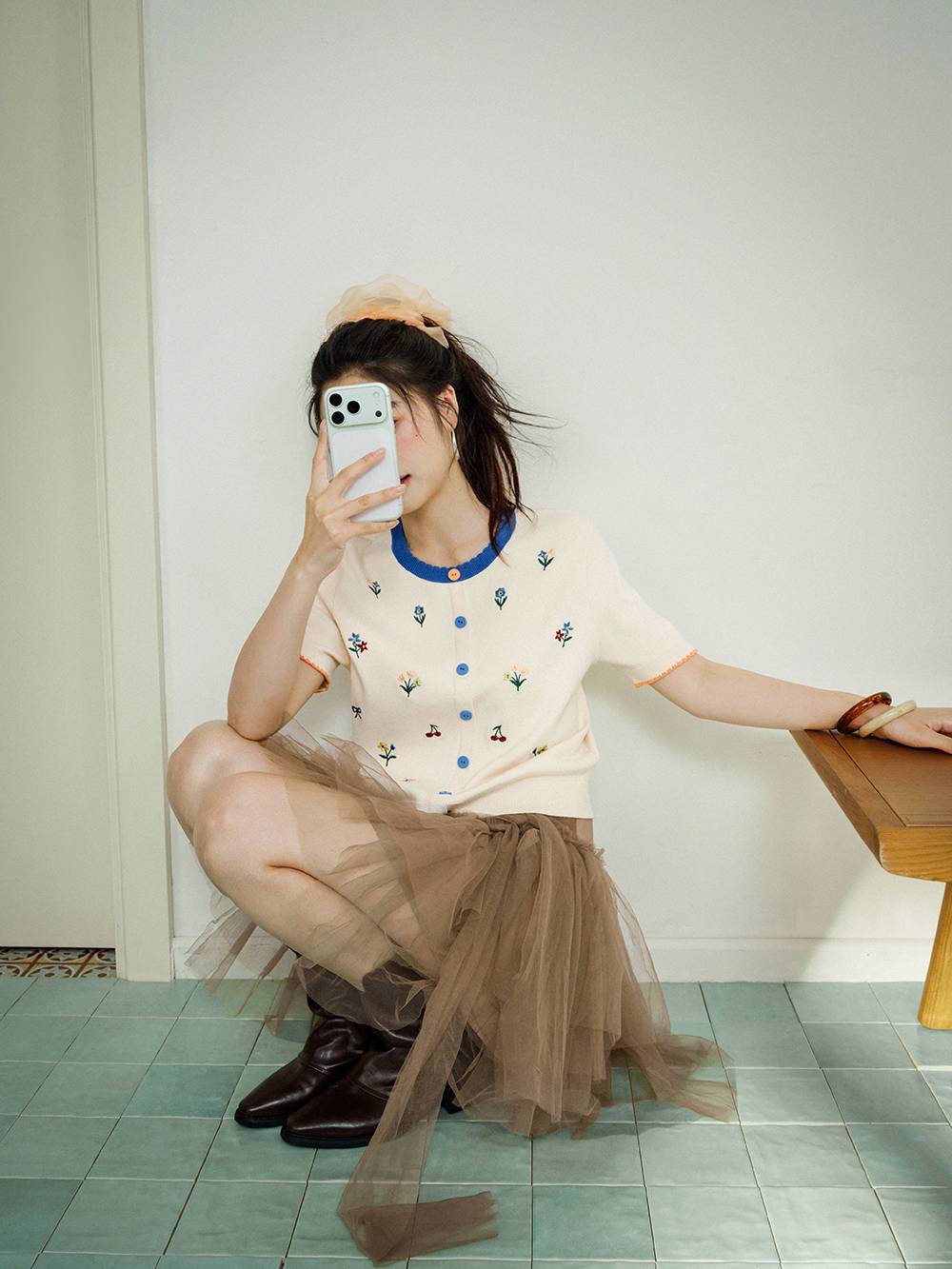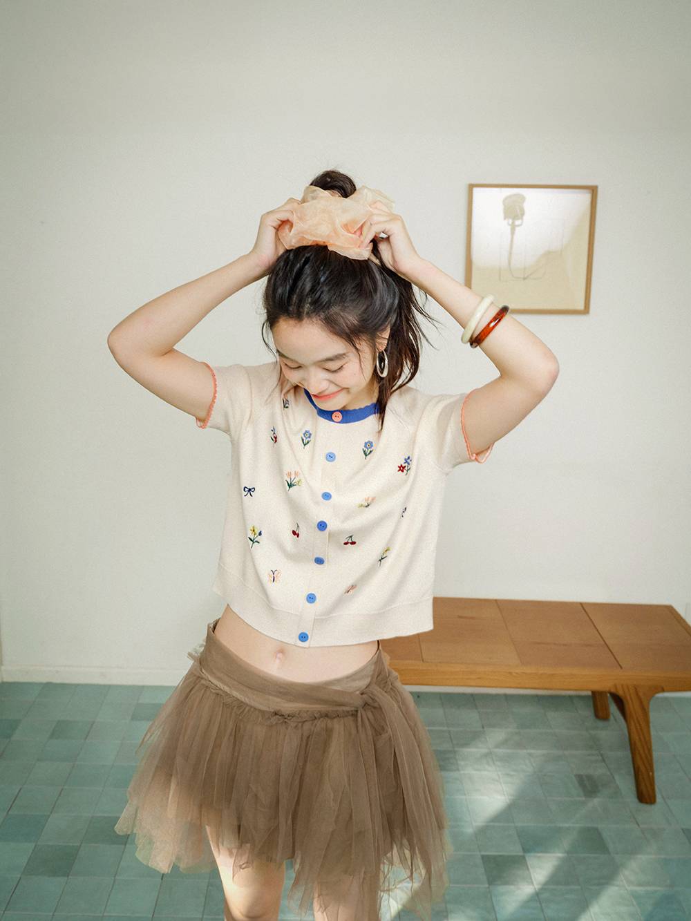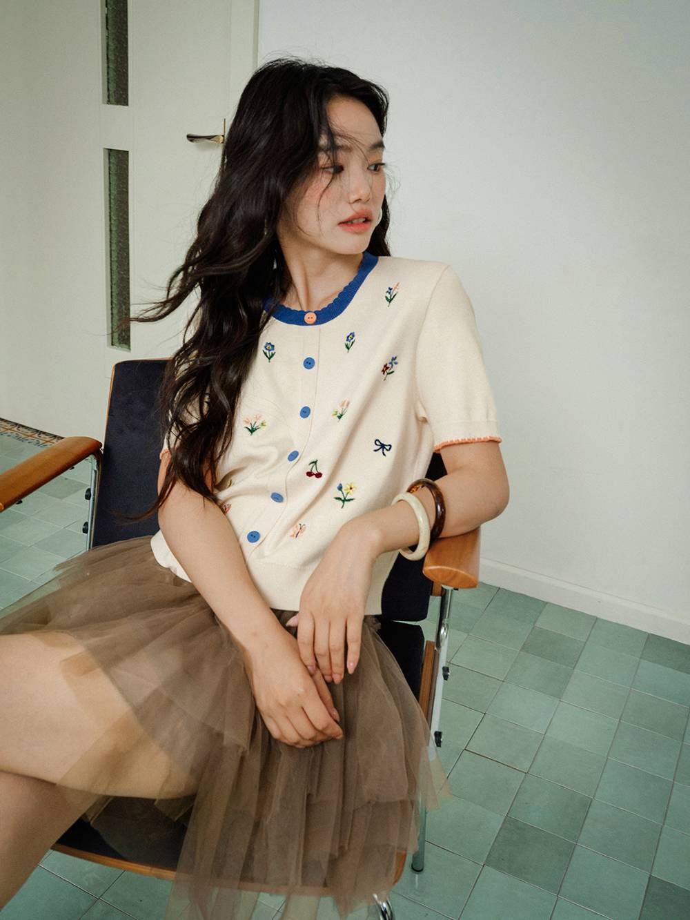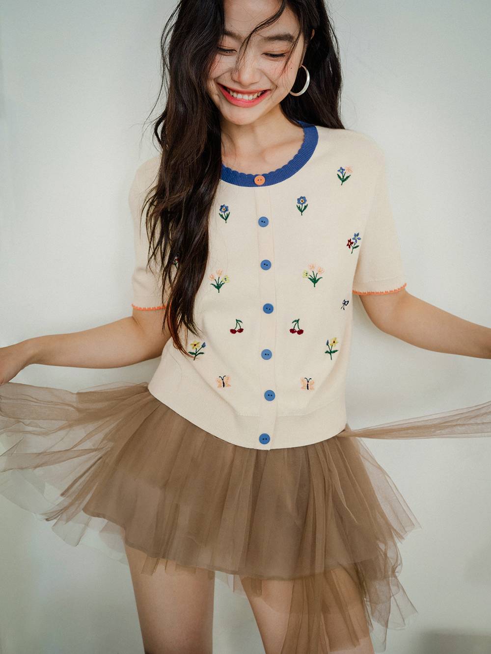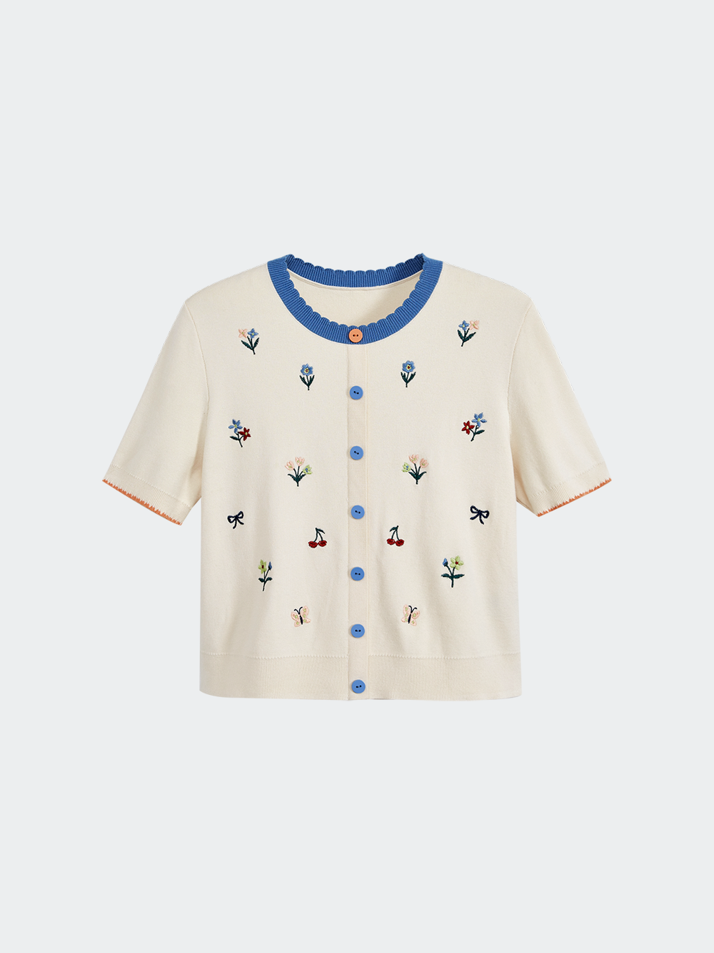 Short Sleeve Embroidered Knit Top