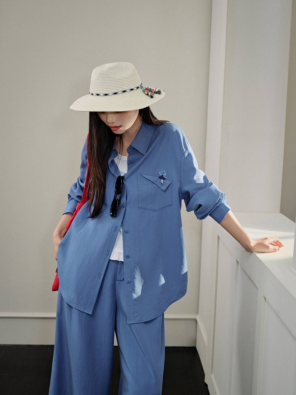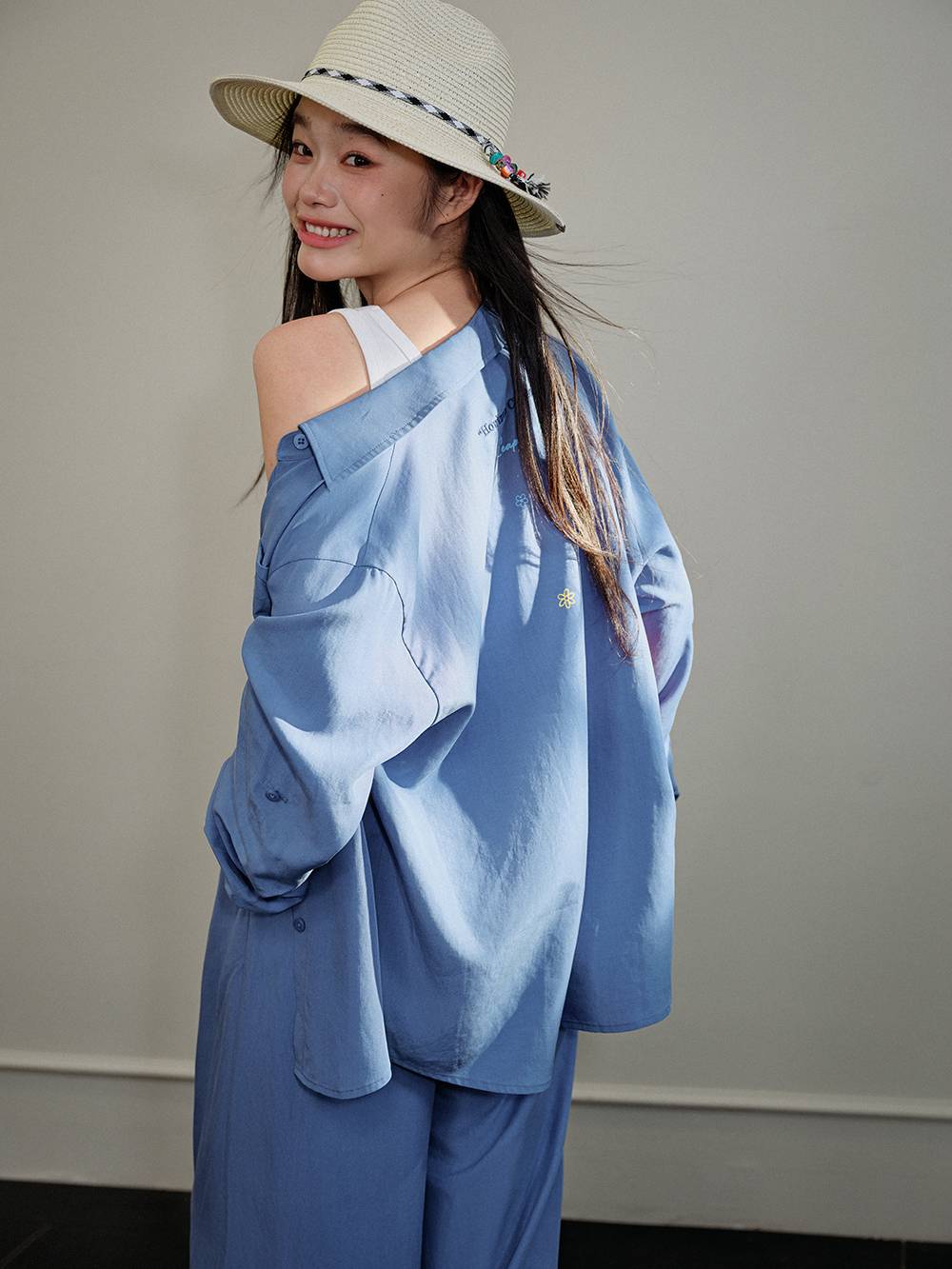 Floral Embroidered Blouse and Pants
