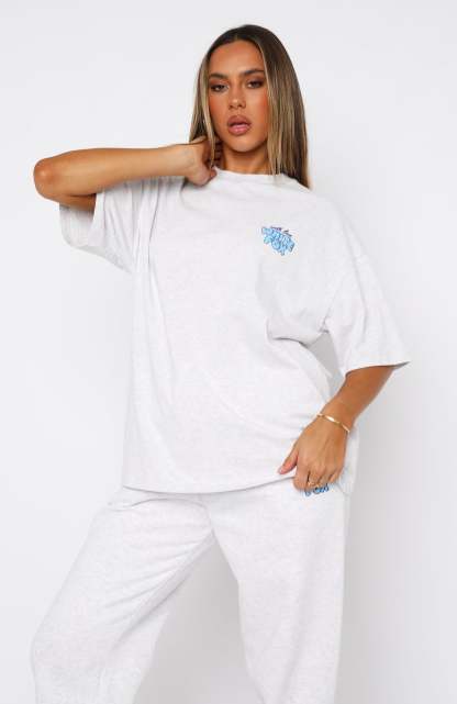 The With Love Always Oversized Tee Grey Marle is an easy, wear-everywhere tee! It is an oversized fit with slouch shoulders, round neckline, and a printed logo side front and centre back. We love this paired with the With Love Sweatpants!