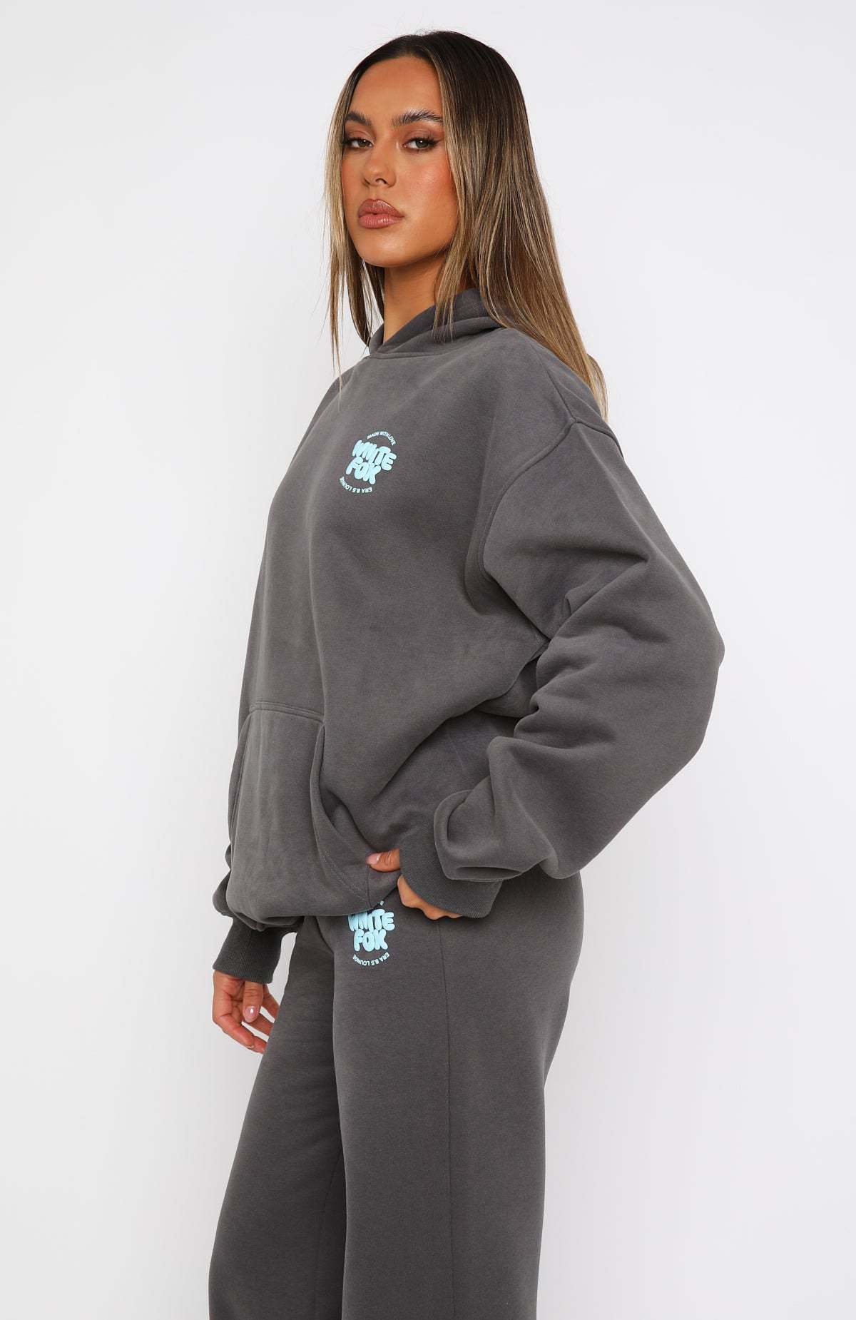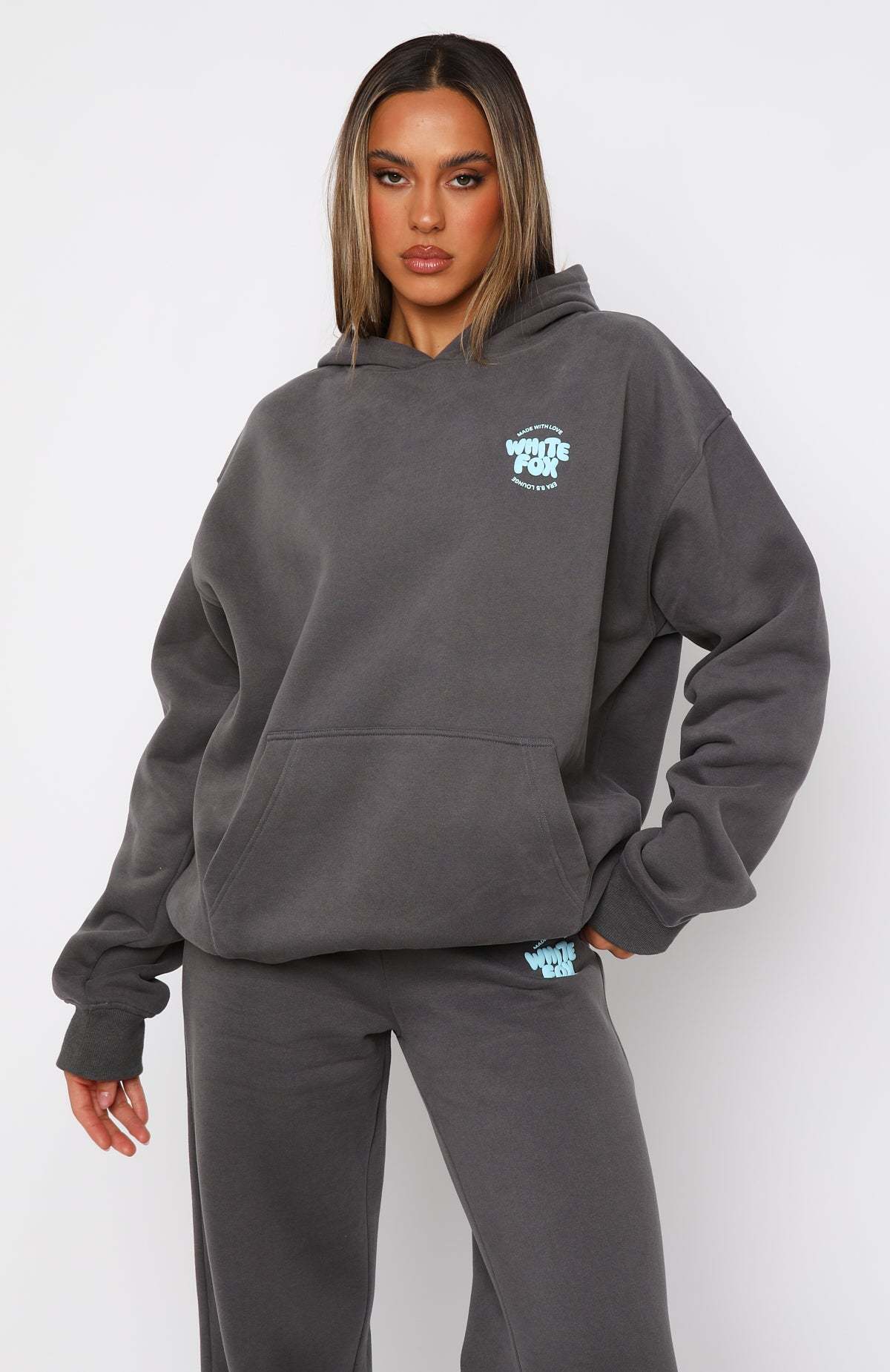 Stay seriously comfy in new, With Love 8.5! Turn up the heat this winter season in the With Love For You Oversized Hoodie Volcanic. Features an oversized fit and elasticated ribbed cuffs & hem, hood, soft fleeced fabric for extra comfort and a puff print logo side front and centre back. Complete the matching With Love For You Wide Leg Sweatpants.
